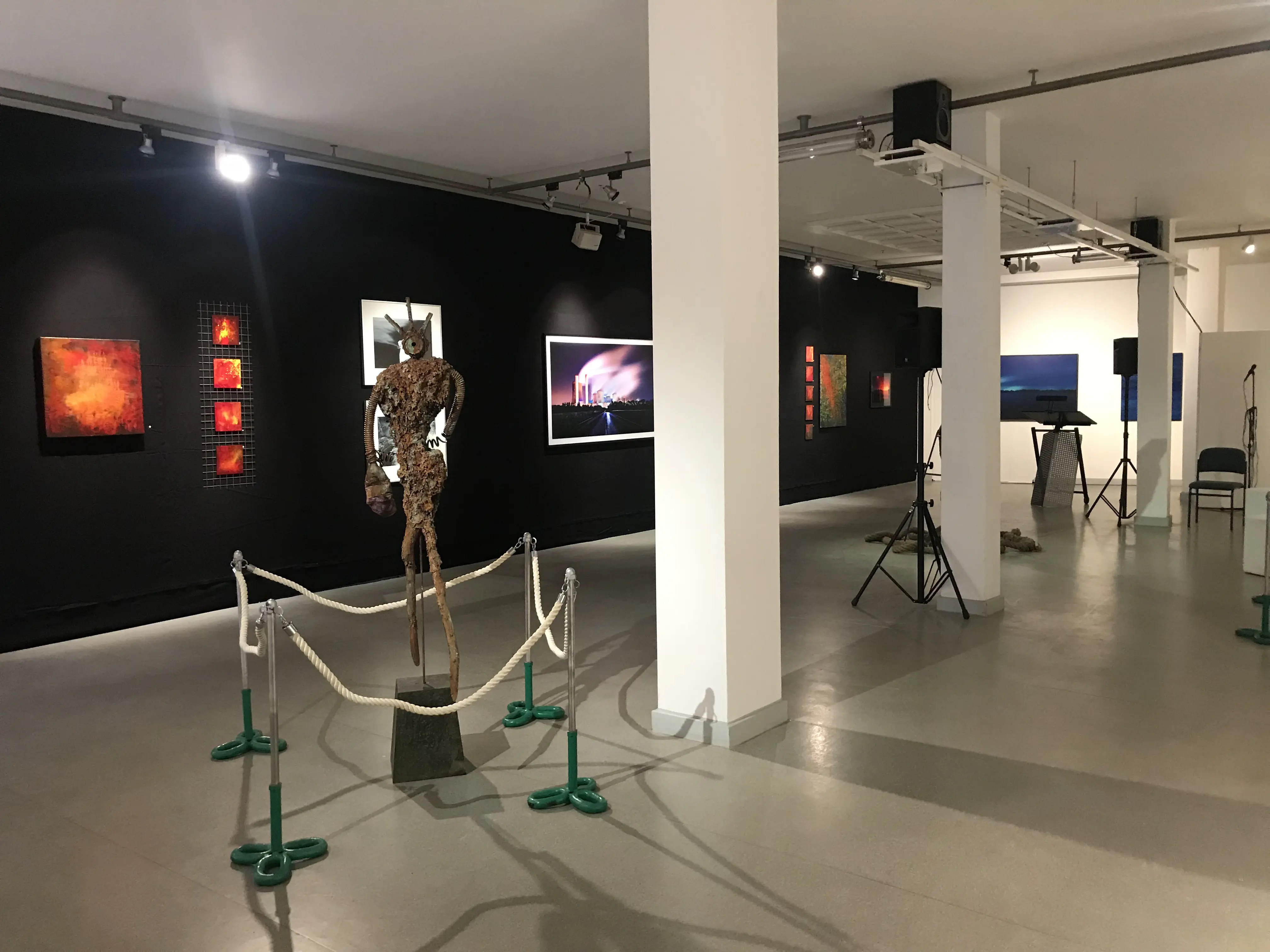 In diesem Jahr wird „Vom Leinpfad zur Leinwand“ in seiner weiterentwickelten Form erstmalig in der RuhrArt Galerie präsentiert. Hierbei stellen Hohmann/Szczepanski ihre Fotografien zum Thema Duisburger Wasserwege/Industrie/Hafen und im Dialog hierzu Weissschuh ihre Malerei/Skulpturen aus. Das verbindende Element der aktuellen Ausstellung in der RuhrArt Galerie zu den surrealen Welten der Fotografien sind zum einen die abstrakten expressiven Bilder auf Stahl. Zum anderen schafft Weissschuh auch in ihren Skulpturen eine Verbindung zu Industrie und Hafen in Form von Plastiken, welche sie aus Treibholz/Objekten/Metallen und Oxidationen anfertigt.